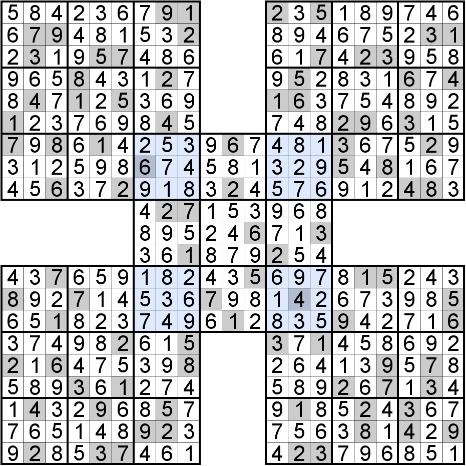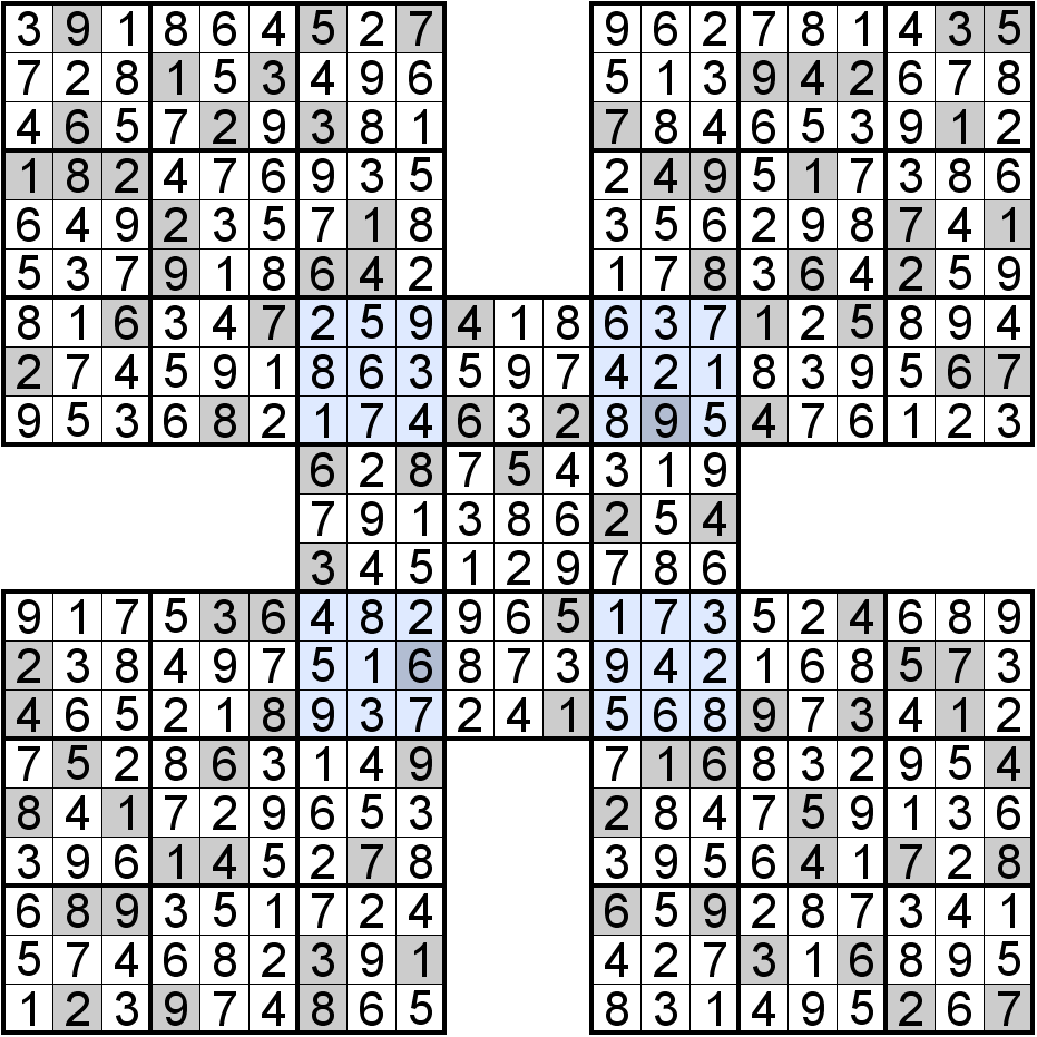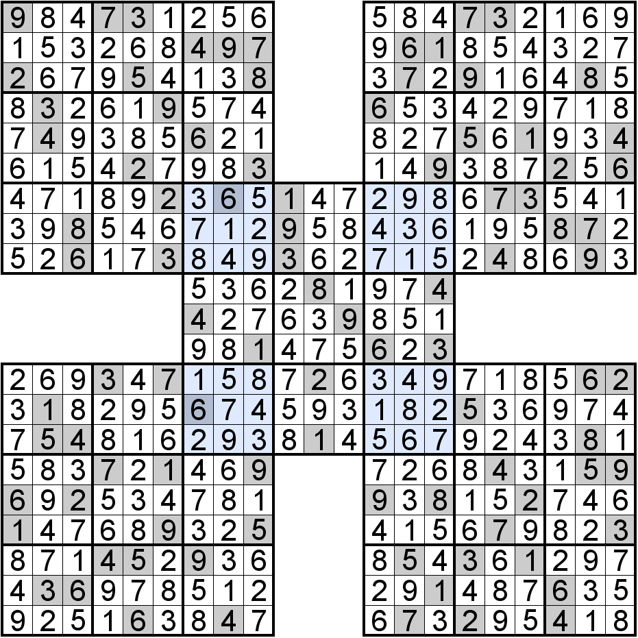 Sudoku Samouraï : exemples gratuits de grilles avec leurs solutions